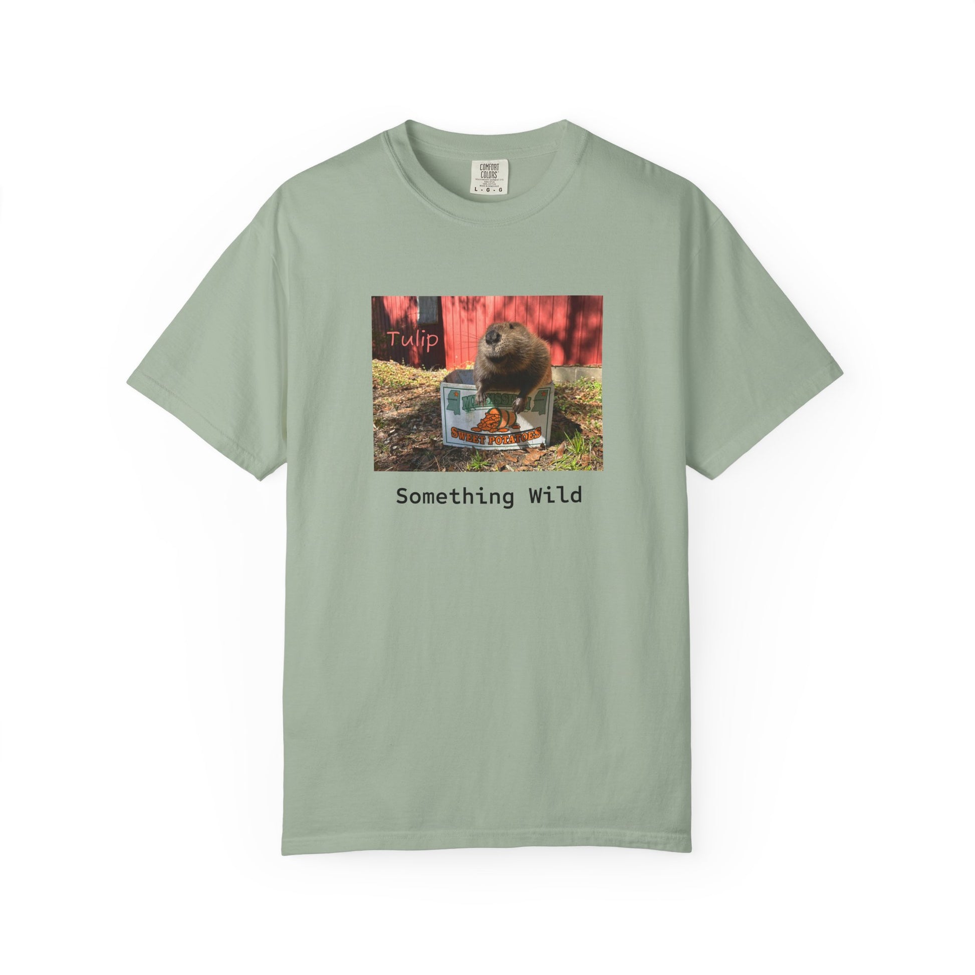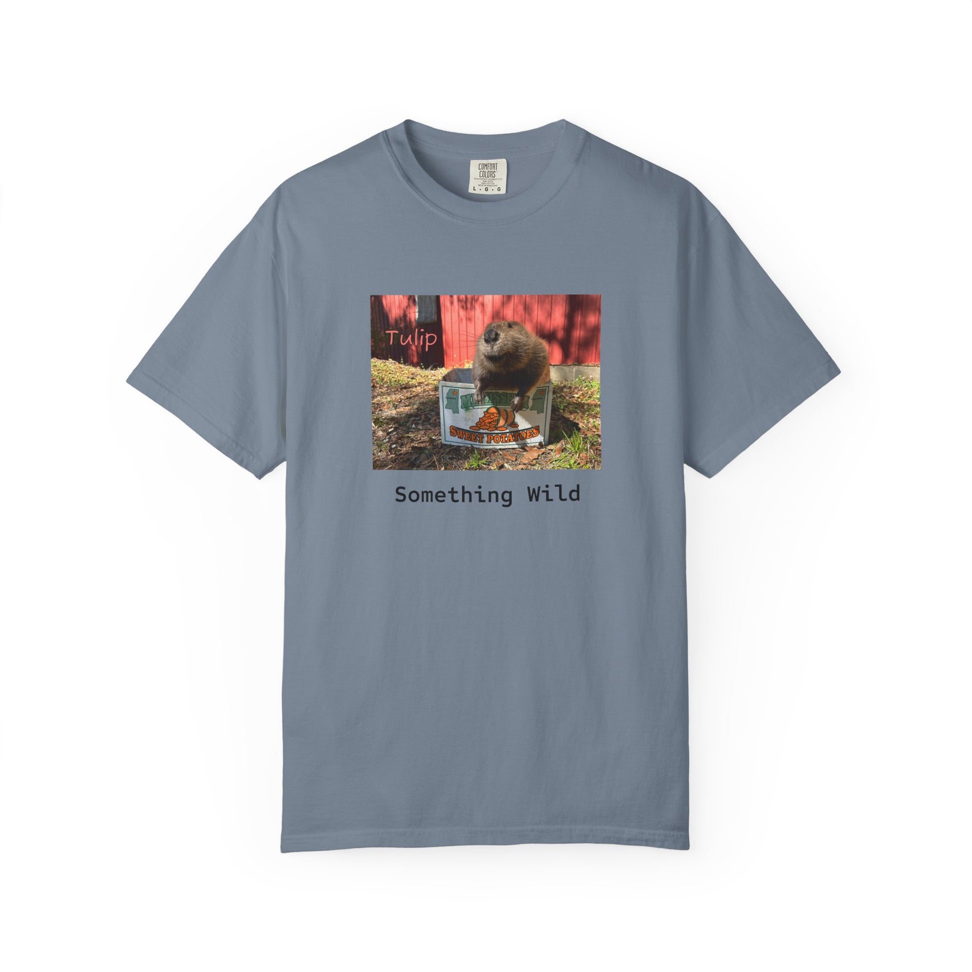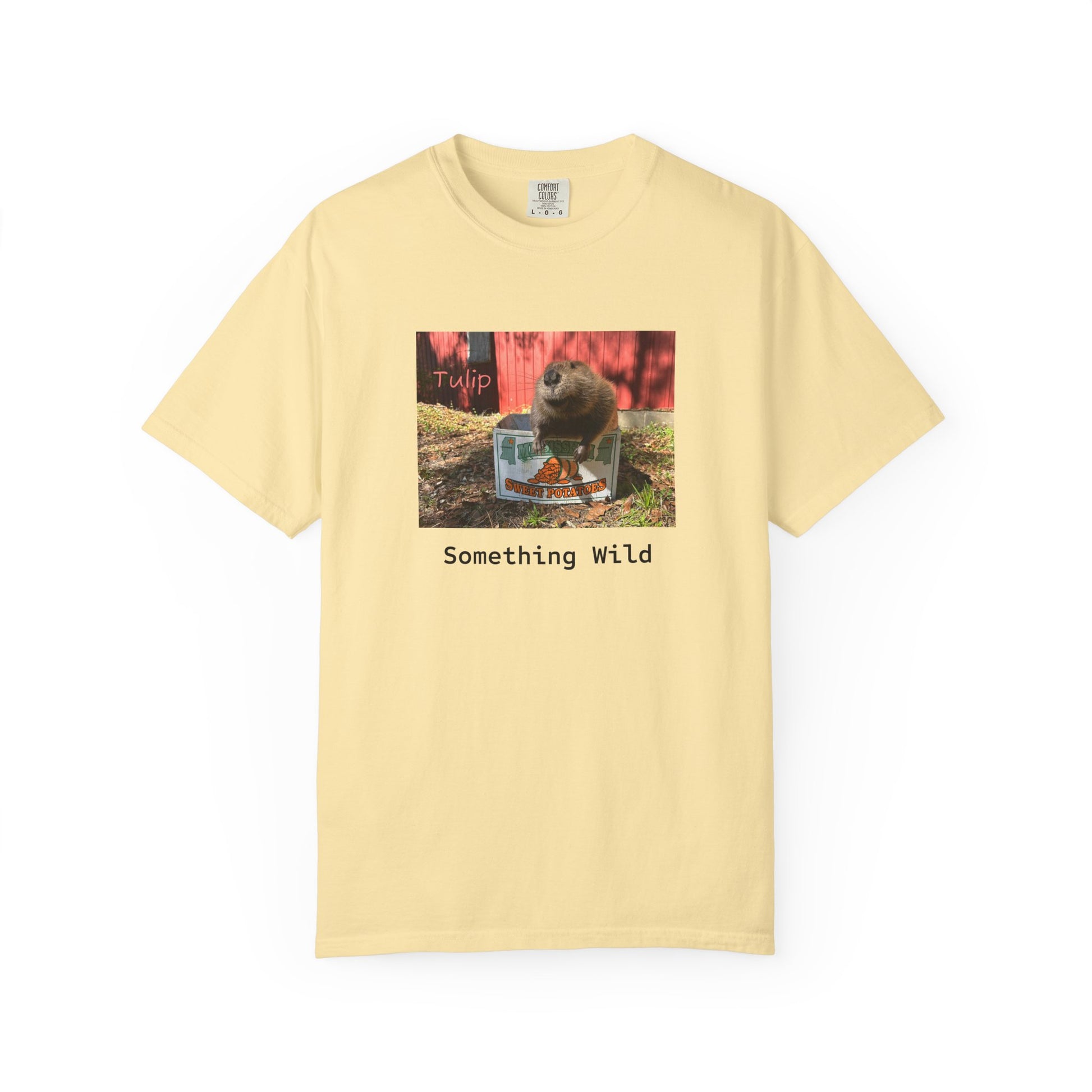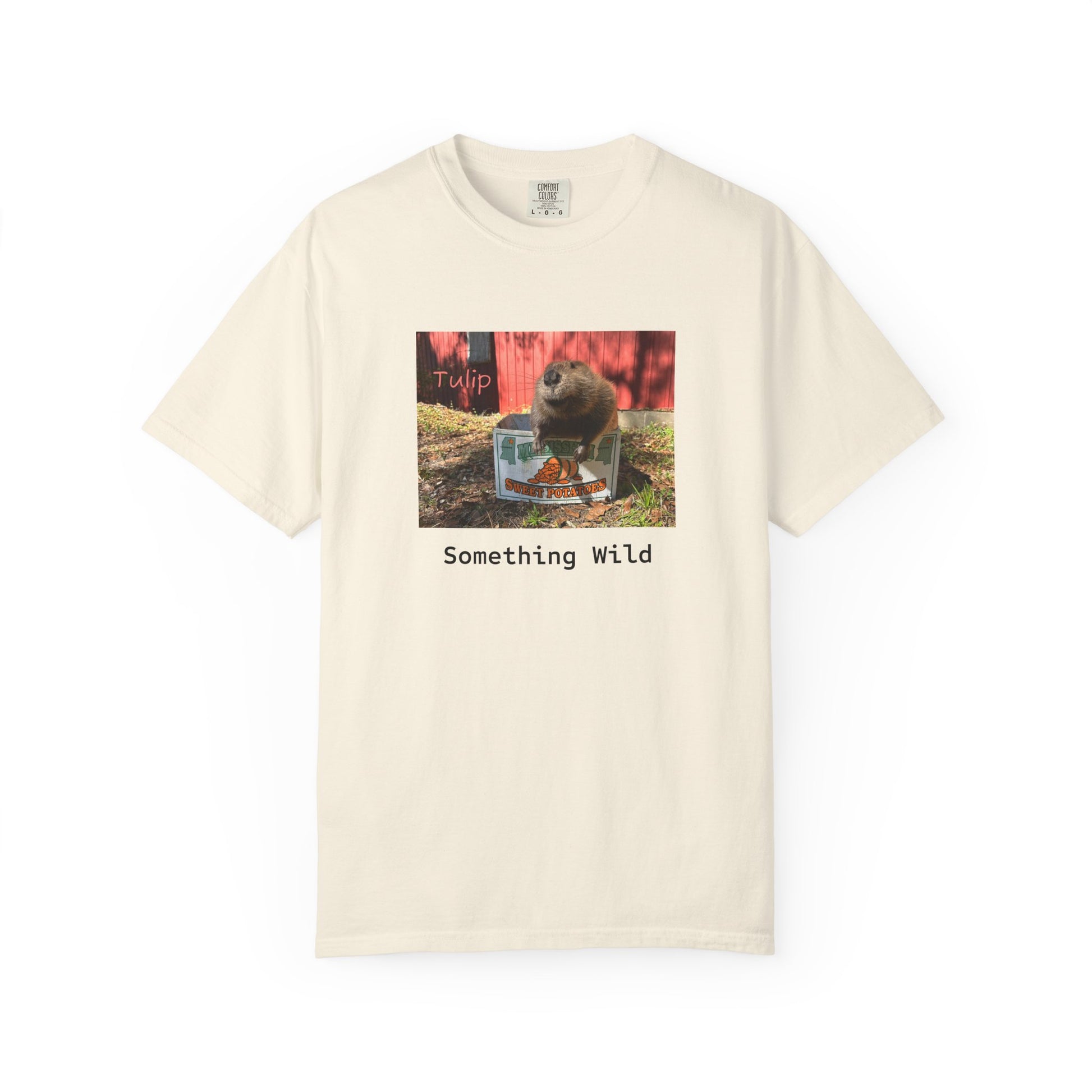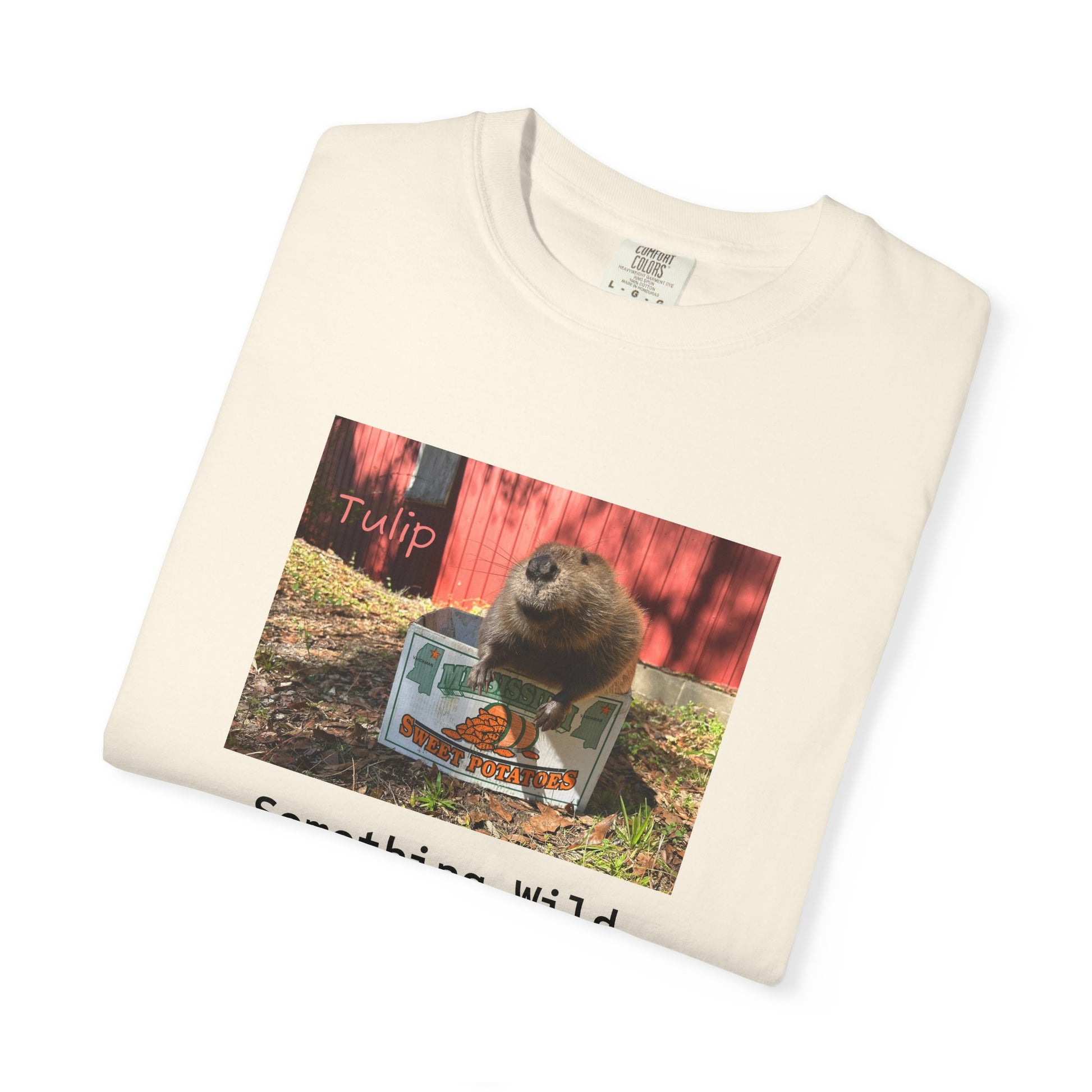 design. This relaxed-fit garment-dyed tee wears in like a favorite from day one — the muted color and soft texture come from dyeing after sewing, giving the print a low-key, vintage energy. The front image — a curious animal moment with the caption “Something Wild” — adds a wink of adventure to quiet days: porch coffee, neighborhood walks, or lazy afternoons with friends. It drapes comfortably on a relaxed silhouette and keeps its shape thanks to double-needle stitching and pre-shrunk ring-spun cotton. Reach for it when you want something casual with personality, a shirt that feels familiar and a little mischievous every time you pull it on.