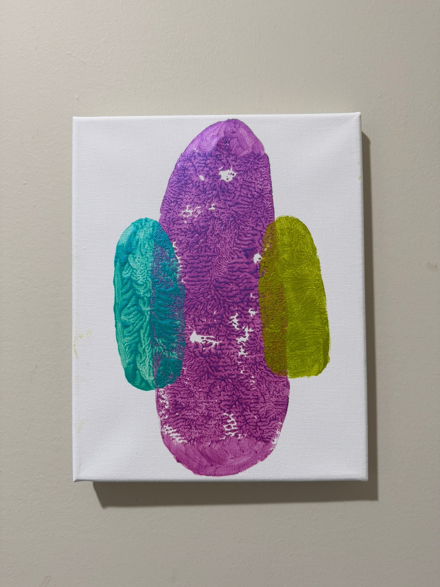 Tulip with baby sprout and blossom tail prints. White 8x10 canvas. Handmade by Holley